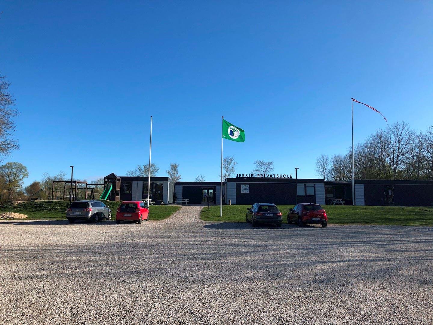 Ud for hovedindgangen skal der etableres cykelparkeringspladser svarende til 1/3 af skolens elevkapacitet, dog minimum 50 pladser. Heraf skal minimum 50% være overdækket.